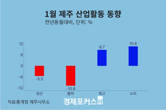 제주지역 소비 지수가 6개월 만에 반등했으나, 생산 부문은 여전히 부진한 상황이다.