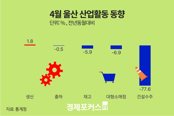 4월 울산의 산업생산이 석 달 연속 증가세를 이어가며 제조업 중심의 회복세를 보였지만, 소비와 건설투자는 감소한 것으로 나타났다.