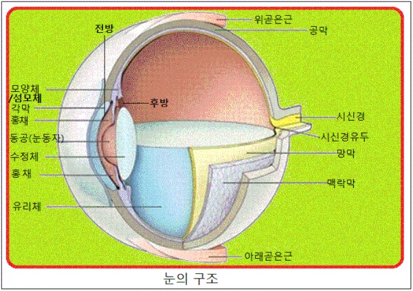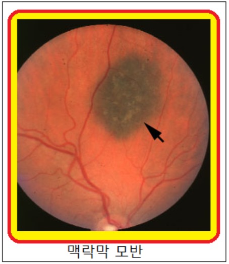 ´« ¼Ó¿¡´Â Ä«¸Þ¶óÀÇ Çʸ§¿¡ ÇØ´çÇÏ´Â ¸Á¸·(retina)À̶ó´Â ½Å°æ Á¶Á÷ÀÌ ÀÖÀ¸¸ç, ÀÌ ¸Á¸·¿¡ ¸ÎÈù À̹ÌÁö¸¦ ½Ã°¢ °æ·Î¸¦ ÅëÇØ ³ú·Î Àü´ÞÇϰí, ¸Ó¸®¿¡¼­ ¿µ»óÁ¤º¸¸¦ ÇØ¼®ÇÏ¿© ¿ì¸®°¡ »ç¹°À» º¼ ¼ö ÀÖ´Ù. ¸Á¸·ÀÇ ¹Ù±ùÂÊ¿¡´Â ¸Æ¶ô¸·(choroid)À̶ó´Â Á¶Á÷ÀÌ ÀÖ¾î ¸Á¸·¿¡ »ê¼Ò¿Í ¿µ¾çºÐÀ» °ø±ÞÇϴµ¥, ´« ¼ÓÀÇ Á¡Àº ÁÖ·Î ÀÌ ¸Æ¶ô¸· ºÎÀ§¿¡ »ý°Ü ¸Æ¶ô¸· ¸ð¹Ý(choroidal nevus)À̶ó°í ÇÑ´Ù.