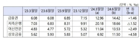 ¾÷±Çº°·Î º¸¸é ÀúÃàÀºÇà Åä´ã´ë ¿¬Ã¼À²ÀÌ Àü ºÐ±âº¸´Ù 1.52%p ³»¸° 18.66%¸¦ ±â·ÏÇß´Ù. ¿©½ÅÀü¹®Àº 13.53%, »óÈ£±ÝÀ¶Àº 11.50%·Î °°Àº ±â°£ °¢°¢ 2.49%p, 4.58%p ¿Ã¶ú´Ù.
