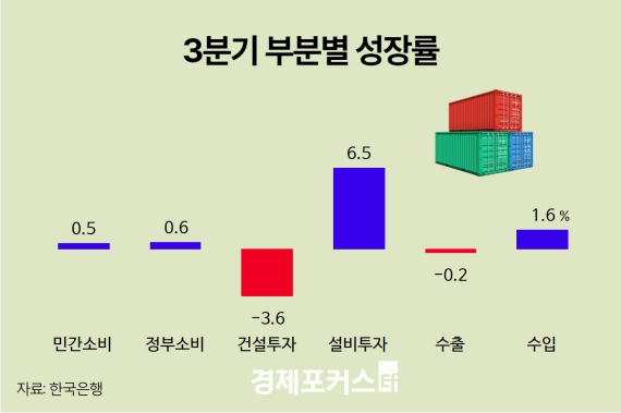 ¿ÃÇØ 3ºÐ±â Çѱ¹ °æÁ¦°¡ ÀüºÐ±â ´ëºñ 0.1% ¼ºÀå¿¡ ¸Ó¹°·¶´Ù. ÀÌ´Â 2ºÐ±âÀÇ -0.2% ¿ª¼ºÀå¿¡¼­ ¹ÝµîÇÑ °ÍÀÌÁö¸¸, ´çÃÊ Çѱ¹ÀºÇàÀÌ Á¦½ÃÇß´ø Àü¸ÁÄ¡ÀÎ 0.5%¿¡´Â Å©°Ô ¸ø ¹ÌÄ¡´Â °á°ú´Ù.