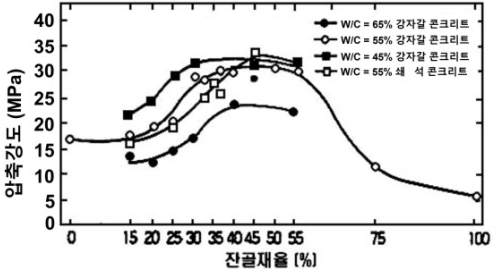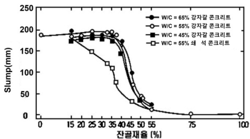 ±×·¯³ª ÇöÀç´Â ±½Àº°ñÀç°¡ °ÀÚ°¥¿¡¼ ¼â¼®À¸·Î, ÀܰñÀç°¡ °¸ð·¡¿¡¼ ºÎ¼ø¸ð·¡·Î ÀüȯµÇ¸é¼ ÀܰñÀçÀ² »óÇâÀÌ ºÒ°¡ÇÇÇØÁ³´Ù. ¿©±â¿¡ ½½·³ÇÁ Áõ°¡, ÆßÇÁ Ÿ¼³ È®´ë µîÀÇ ¿äÀÎÀÌ ´õÇØÁö¸é¼ ÀܰñÀçÀ²Àº °ú°Åº¸´Ù ÃÖ´ë 15%°¡·® ³ô¾ÆÁú ¼ö ÀÖ´Ù. ¿¹ÄÁ´ë ¹°-½Ã¸àÆ®ºñ(W/C) 50%ÀÇ ¼â¼® ÄÜÅ©¸®Æ® ±âÁØ ÀûÁ¤ ÀܰñÀçÀ²Àº ¾à 48% ¼öÁØÀ¸·Î Æò°¡µÈ´Ù.
