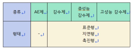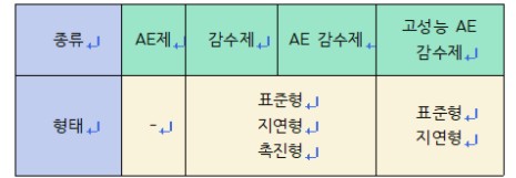KS F 2560ÀÇ ÄÜÅ©¸®Æ®¿ë È­ÇÐȥȭÁ¦¿¡´Â Ç¥ 1°ú °°ÀÌ ±× Á¾·ù·Î AEÁ¦, °¨¼öÁ¦, AE °¨¼öÁ¦, °í¼º´É AE °¨¼öÁ¦°¡ ÀÖ°í °¨¼öÁ¦, AE °¨¼öÁ¦¿¡´Â Ç¥ÁØÇü, Áö¿¬Çü, ÃËÁøÇüÀÌ ÀÖÀ¸¸ç, °í¼º´É AE °¨¼öÁ¦¿¡´Â Ç¥ÁØÇü ¹× Áö¿¬ÇüÀÌ ±ÔÁ¤µÇ¾î ÀÖ´Ù. ±×·±µ¥ ÀÌÁß AEÁ¦¿Í °¨¼öÁ¦´Â ¹®Á¦°¡ ¾ø¾î º¸À̰í, AE °¨¼öÁ¦ÀÇ °æ¿ì´Â À־, ¾ø¾îµµ ÁÁ´Ù°í ÇϰÚÁö¸¸ ¾ø´Â °ÍÀÌ ÁÁÀ¸¸ç, ¹®Á¦´Â °í¼º´É AE °¨¼öÁ¦ÀÌ´Ù. ±âº»ÀûÀ¸·Î AEÁ¦´Â °ø±â·®À» ³»±â À§ÇÑ °ÍÀ̰í, °¨¼öÁ¦´Â ¹°À» ÁÙ¿©¼­ À¯µ¿¼ºÀ» ³»±â À§ÇÑ °ÍÀÌ´Ù. ¾îÂî º¸¸é ÇϳªÀÇ È¥È­Á¦·Î °ø±â·®µµ ³»°í À¯µ¿¼ºµµ ³½´Ù´Â ¸é¿¡¼­´Â Àϼ®ÀÌÁ¶(ìéà´ì£ðè)ÀÇ È¿°ú·Î Æí¸®ÇÒ ¼ö ÀÖ´Ù.