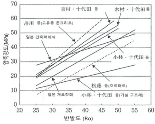 ±×·¯³ª ¿ì¸®³ª¶ó¿¡¼ ½´¹ÌÆ® Çܸӹý ºñÆÄ±«½ÃÇèÀ¸·Î ¾ÐÃà°µµ¸¦ ÃßÁ¤ÇÔ¿¡ ÀÖ¾î °¡Àå Å©°Ô ¹®Á¦ ½Ã µÇ´Â °ÍÀº ¹Ý¹ßµµ¿¡ µû¸¥ ¾ÐÃà°µµ ÃßÁ¤ ½ÄÀ» ¾î¶² °ÍÀ» Àû¿ëÇÒ °ÍÀΰ¡¿¡ °üÇÑ °ÍÀÌ´Ù. ±×¸² 1Àº ÀϺ» ´Ù´Ï°¡¿Í(ÍÛô¹) ±³¼ö°¡ °¨¼öÇÑ ¡¸ÄÜÅ©¸®Æ® ±¸Á¶¹°ÀÇ ºñÆÄ±«°Ë»ç·Áø´Ü¹æ¹ý¡¹¿¡ ÀϺ»´ëÇÐ À¯¿Í»ç(÷·ô¼) ±³¼ö°¡ ¼Ò°³ÇÑ ¾ÐÃà°µµ¿Í ¹Ý¹ßµµ °£ÀÇ °ü°è¸¦ ³ªÅ¸³½ °ÍÀÌ´Ù. ¿©·¯ °¡Áö Á¶°Ç¿¡ µû¶ó ½ÃÇèÀÚ¸¶´Ù ¸¹Àº ÆíÂ÷°¡ ÀÖÀ½À» ¾Ë ¼ö ÀÖ´Ù. ½ÉÇÑ °æ¿ì·Î´Â °µµ ÃßÁ¤°ª¿¡ 2¹è ÀÌ»ó Â÷À̰¡ ³ª´Â °æ¿ìµµ Á¸ÀçÇÔÀ» ¾Ë ¼ö ÀÖ´Ù.