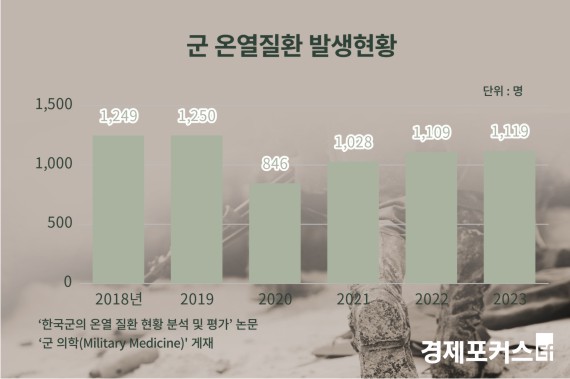 ¿¬±¸ÆÀÀº ±º Àǹ«´ë¿Í ±º º´¿ø¿¡¼ Ä¡·áÇÑ ¿Â¿ Áúȯ ȯÀÚ ÇöȲÀ» Áý°èÇß´Ù. 2018³â 1,249¸í, 2019³â 1,250¸í, 2020³â 846¸í, 2021³â 1,028¸í, 2022³â 1,109¸í, 2023³â 1,119¸íÀÌ´Ù.