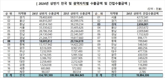 2024³â »ó¹Ý±â °æºÏÁö¿ªÀÇ °£Á¢¼öÃâ¾×Àº 23¾ï 9900¸¸ ´Þ·¯·Î, ¼­¿ï°ú °æ±â¸¦ À̾î Àü±¹¿¡¼­ 3À§¸¦ ±â·ÏÇß´Ù. °£Á¢¼öÃâÀº ±¸¸ÅÈ®Àμ­¿Í ³»±¹½Å¿ëÀåÀ» ±â¹ÝÀ¸·Î ¼öÃâ±â¾÷¿¡ ¿ø·ºÎÀÚÀç °ø±Þ µîÀ» ÅëÇØ ¼öÃâ¿¡ ±â¿©ÇÑ ½ÇÀûÀ» È®ÀÎÇÒ ¼ö ÀÖ´Â ¼öÄ¡´Ù.