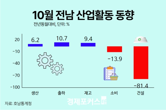 29ÀÏ È£³²Åë°èûÀÌ ¹ßÇ¥ÇÑ '10¿ù ±¤ÁÖÀü³² »ê¾÷Ȱµ¿µ¿Çâ'¿¡ µû¸£¸é ±¤ÁÖ ±¤°ø¾÷ »ý»êÀº Áö³ÇØ °°Àº ´Þº¸´Ù 15.4%, ÇÑ ´ÞÀüº¸´Ù´Â 5.9%°¡ Áõ°¡Çß´Ù.