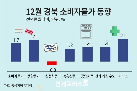 µ¿ºÏÁö¹æÅë°èûÀº 2024³â 12¿ù ´ë±¸·°æºÏ ¼ÒºñÀÚ¹°°¡Áö¼ö°¡ Àü³â µ¿¿ù ´ëºñ °¢°¢ 2.0%, 1.7% »ó½ÂÇß´Ù°í 31ÀÏ ¹àÇû´Ù.