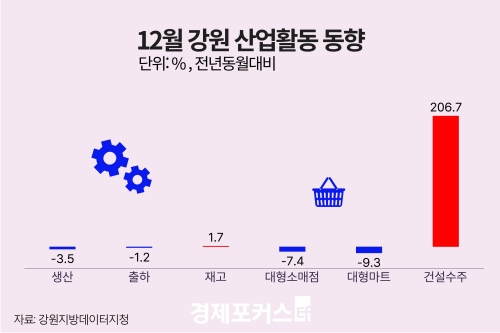Áö³ÇØ 12¿ù °¿øÁö¿ª »ê¾÷Ȱµ¿Àº ±¤°ø¾÷ »ý»ê°ú ¼Òºñ°¡ ¸ðµÎ °¨¼ÒÇÑ ¹Ý¸é °Ç¼³¼öÁÖ´Â Å« ÆøÀ¸·Î Áõ°¡ÇÑ °ÍÀ¸·Î ³ªÅ¸³µ´Ù.