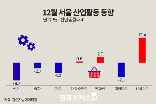 Áö³ÇØ 12¿ù ¼¿ïÀÇ ±¤°ø¾÷ »ý»êÀÌ °¨¼ÒÇßÀ¸³ª, °Ç¼³¼öÁÖ¿Í ´ëÇü¼Ò¸ÅÁ¡ ÆÇ¸Å´Â Áõ°¡ÇÑ °ÍÀ¸·Î ³ªÅ¸³µ´Ù