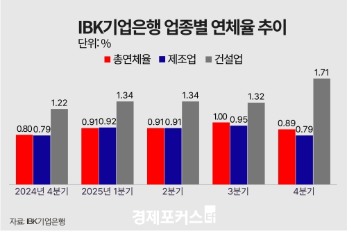 23ÀÏ ±ÝÀ¶±Ç¿¡ µû¸£¸é IBK±â¾÷ÀºÇàÀÇ Áß¼Ò±â¾÷ °Ç¼³¾÷ ¿¬Ã¼À²(1°³¿ù ÀÌ»ó ¿ø¸®±Ý ¿¬Ã¼ ±âÁØ)Àº Áö³­ÇØ ¸» 1.71%·Î Áý°èµÆ´Ù. Àü³â ´ëºñ 0.49%Æ÷ÀÎÆ®(p) ¿À¸¥ ¼öÄ¡·Î, IRºÏ¿¡ °ü·Ã Åë°è°¡ ³²¾Æ ÀÖ´Â 2011³â ÀÌÈÄ ¿¬¸» ±âÁØ ÃÖ°íÄ¡´Ù.