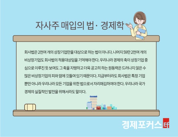 ȸ»ç¹ýÀº ±â¾÷ÀÇ »ýȰ°ü°è¸¦ ±ÔÀ²ÇÏ´Â ¹ýÀÌ´Ù. ±×·¯³ª µ¿½Ã¿¡ ȸ»ç¹ýÀº ±â¾÷ÀÇ »ýȰ°ü°è¸¦ ÃËÁøÇÏ´Â ¹ýÀ̱⵵ ÇÏ´Ù. ƯÈ÷ 2011³â °³Á¤À¸·Î ÀÌÁ¦´Â ȸ»ç¹ýµµ ÀÚ»çÁÖ ¸ÅÀÔ¿¡ °üÇÑ ±¸ Áõ±Ç°Å·¡¹ýÀÇ ÀÔÀåÀ» ¼ö¿ëÇÑ ¸¸Å ±â¾÷ÀÇ »ýȰ°ü°è¸¦ ´õ¿í Àß »ìÇÊ Çʿ䰡 ÀÖ´Ù. ÀÚ»çÁÖ ¸ÅÀÔÀÇ Çã¿ëÀÌ ÀÚÀ¯·Î¿î Áֽİŷ¡¸¦ ÅëÇØ ÁֽĽÃÀåÀÇ È¿À²¼ºÀ» ³ôÀ̰í Àû´ëÀû M&A¿¡ ´ëÇÑ ¹æ¾î¼ö´ÜÀ¸·Î¼ °æ¿µ±Ç ¾ÈÁ¤À» µµ¸ðÇÑ´Ù´Â ÀÔÀå¿¡¼ ¸»ÀÌ´Ù. ±×·±µ¥ ¾ÆÁ÷µµ ´ëºÎºÐÀÇ ºñ»óÀå±â¾÷Àº ȸ»ç¹ýÀÇ º¯ÈµÈ ¸ð½ÀÀ» Àß ¸ð¸£´Â °æ¿ì°¡ ¸¹´Ù. ȸ»ç¹ýÀÇ ÁÖ¿ä °ü½É´ë»óÀÌ ºñ»óÀå±â¾÷º¸´Ù´Â »óÀå±â¾÷¿¡ Ä¡ÁßµÈ ÀÌÀ¯ÀÌ´Ù.