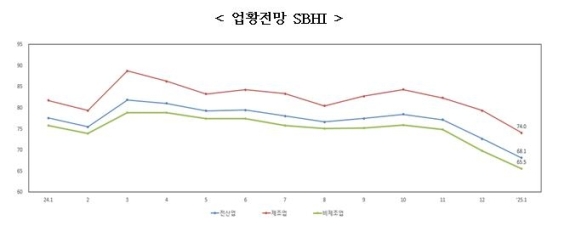 Áß¼Ò±â¾÷Áß¾Óȸ´Â Àü±¹ Áß¼Ò±â¾÷ 3,071°³¸¦ ´ë»óÀ¸·Î ½Ç½ÃÇÑ '2025³â 1¿ù Áß¼Ò±â¾÷ °æ±âÀü¸ÁÁ¶»ç' °á°ú¸¦ 26ÀÏ ¹ßÇ¥Çß´Ù. Á¶»ç °á°ú ³»³â 1¿ù Áß¼Ò±â¾÷°æ±âÀü¸ÁÁö¼ö(SBHI)´Â '68.1'·Î ³ªÅ¸³µ´Ù. Áß¼Ò±â¾÷°æ±âÀü¸ÁÁö¼ö´Â 100À» ±âÁØÀ¸·Î ±× ÀÌ»óÀ̸é ÁÁ¾ÆÁö°í, 100 ¾Æ·¡¸é ³ªºüÁø´Ù´Â Àǹ̴Ù.