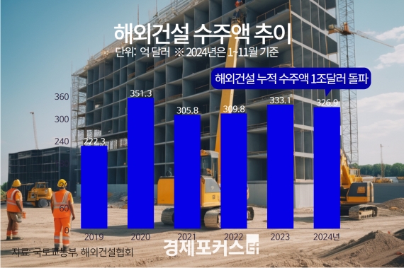 Áö³ÇØ ÇØ¿Ü°Ç¼³ ¿¬°£ ¼öÁÖ¾×Àº Á¤ºÎ°¡ ¸ñǥġ·Î ÀâÀº 400¾ï ´Þ·¯¸¦ ³ÑÁø ¸øÇß´Ù. ÇÏÁö¸¸ 2015³â 461¾ï´Þ·¯ ÀÌÈÄ 9³â ¸¸¿¡ °¡Àå ³ôÀº ¼öÁØÀ» ±â·ÏÇß´Ù.