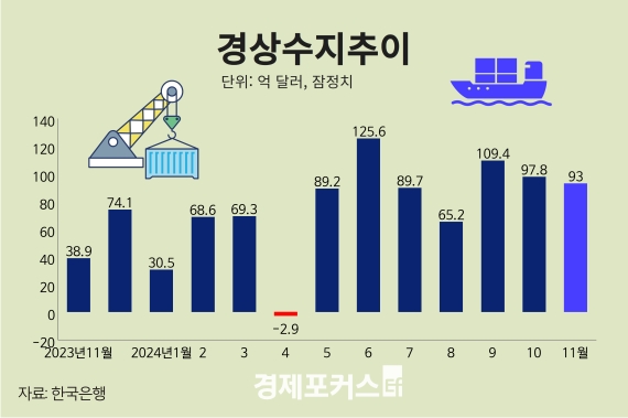 Áö³­ÇØ 11¿ù °æ»ó¼öÁö 93¾ï´Þ·¯¡¦¼öÃâ Áõ°¡¼¼ µÐÈ­¿¡µµ 7°³¿ù ¿¬¼Ó ÈæÀÚ
