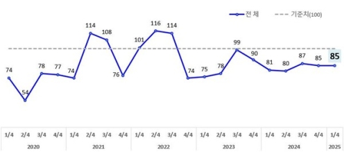 14ÀÏ ±¤ÁÖ»ó°øÈ¸ÀǼҿ¡ µû¸£¸é ±¤ÁÖÁö¿ª 47°³ ¼Ò¸Å·À¯Åë¾÷ü¸¦ ´ë»óÀ¸·Î ‘2025³â 1ºÐ±â ¼Ò¸ÅÀ¯Åë¾÷ °æ±âÀü¸ÁÁö¼ö(RBSI)’¸¦ Á¶»çÇÑ °á°ú, Áö³ ºÐ±â(85)¿Í µ¿ÀÏÇÑ ‘85’·Î, °æ±â ¾ÇÈ ±¹¸éÀÌ Áö¼ÓµÉ °ÍÀ¸·Î ¿¹»óÇß´Ù.