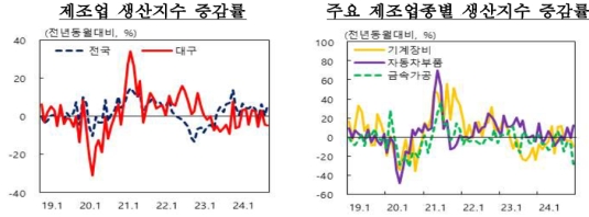 Áö³ÇØ 12¿ù ´ë±¸Áö¿ª Á¦Á¶¾÷ »ý»êÀÌ 2°³¿ù ¿¬¼Ó ºÎÁøÇßÁö¸¸ °æºÏÀº 9.7% Áõ°¡ÇÑ °ÍÀ» ³ªÅ¸³µ´Ù.