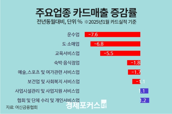 11ÀÏ ¿©½Å±ÝÀ¶ÇùȸÀÇ ‘2025³â 1¿ù Ä«µå ½ÂÀνÇÀû’¿¡ µû¸£¸é ´ëºÎºÐÀÇ ¾÷Á¾¿¡¼­ Àü³â µ¿¿ù ´ëºñ Ä«µå ¸ÅÃâÀÌ °¨¼ÒÇß´Ù.