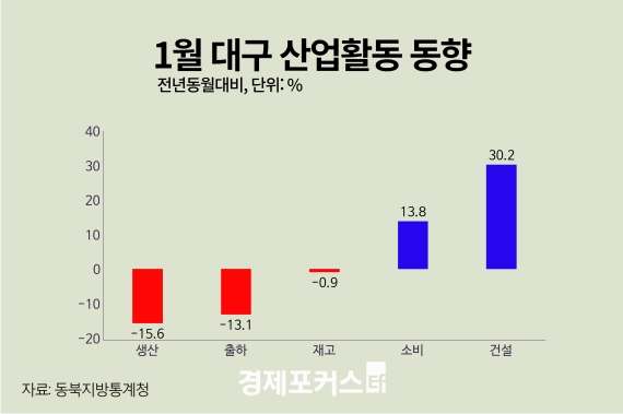 Áö³ 1¿ù ´ë±¸·°æºÏÀÇ ±¤°ø¾÷ »ý»êÀÌ °¨¼ÒÇÑ ¹Ý¸é, ´ëÇü¼Ò¸ÅÁ¡ ÆÇ¸Å´Â Áõ°¡ÇÑ °ÍÀ¸·Î ³ªÅ¸³µ´Ù. °Ç¼³ ¼öÁÖ¿¡¼´Â ´ë±¸¿Í °æºÏÀÌ »ó¹ÝµÈ È帧À» º¸¿´´Ù.