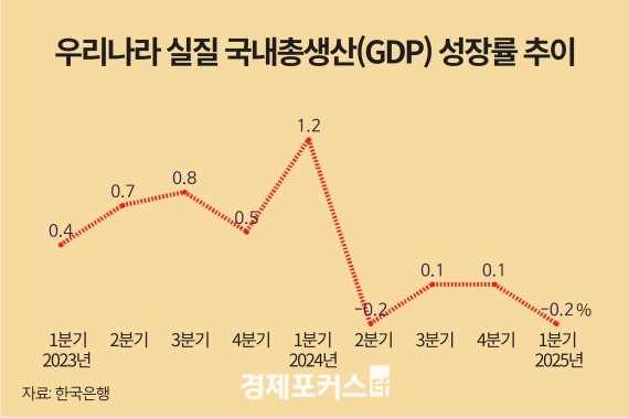 Çѱ¹ÀºÇàÀº 1ºÐ±â ½ÇÁú ±¹³»ÃÑ»ý»ê(GDP) ¼ºÀå·ü(Á÷ÀüºÐ±â´ëºñ·ÀáÁ¤Ä¡)ÀÌ -0.2%·Î Áý°èµÆ´Ù°í 5ÀÏ ¹àÇû´Ù. Áö³­´Þ 24ÀÏ °ø°³µÈ ¼Óº¸Ä¡¿Í °°´Ù.