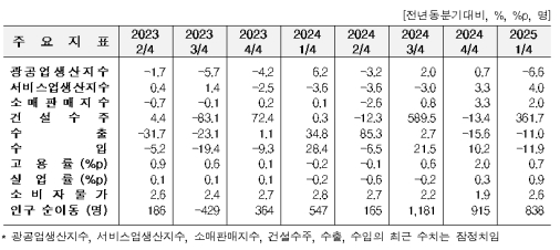 ¿ÃÇØ 1ºÐ±â ¼¼Á¾ Áö¿ª°æÁ¦´Â ±¤°ø¾÷ »ý»ê°ú ¼öÃâÀÌ °¨¼ÒÇßÀ¸³ª, ¼ºñ½º¾÷ »ý»ê°ú °Ç¼³¼öÁÖ°¡ Å« ÆøÀ¸·Î Áõ°¡ÇÑ °ÍÀ¸·Î ³ªÅ¸³µ´Ù.