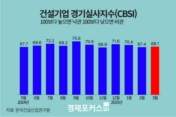 Çѱ¹°Ç¼³»ê¾÷¿¬±¸¿ø(¿øÀå ÀÌÃæÀç)¿¡ µû¸£¸é 3¿ù CBSI´Â Àü¿ù ´ëºñ 0.7Æ÷ÀÎÆ®(p)»ó½ÂÇÑ 68.1À» ±â·ÏÇß´Ù. CBSI°¡ ±âÁؼ±ÀÎ 100À» ¹Øµ¹¸é ÇöÀçÀÇ °Ç¼³°æ±â¸¦ ºñ°üÀûÀ¸·Î º¸´Â ±â¾÷ÀÌ ³«°üÀûÀ¸·Î º¸´Â ±â¾÷º¸´Ù ¸¹À½À» ¶æÇÑ´Ù.