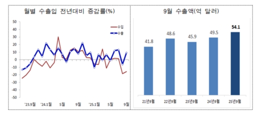 15ÀÏ ÀÎõº»ºÎ¼¼°ü¿¡ µû¸£¸é, 9¿ù ÀÎõÀÇ ¼öÃâÀº Àü³â µ¿¿ù ´ëºñ 9.3% Áõ°¡ÇÑ 54¾ï1000¸¸ ´Þ·¯, ¼öÀÔÀº 15.5% °¨¼ÒÇÑ 45¾ï8000¸¸ ´Þ·¯·Î Áý°èµÆ´Ù.