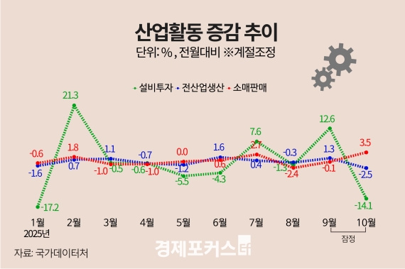 10¿ù »ê¾÷Ȱµ¿ ÁöÇ¥°¡ Àü¹ÝÀûÀ¸·Î À§ÃàµÈ °ÍÀ¸·Î ³ªÅ¸³µ´Ù. ¼Ò¸ÅÆÇ¸Å´Â ¸íÀý È¿°ú·Î Áõ°¡ÇßÁö¸¸, Àü»ê¾÷ »ý»ê°ú ¼³ºñ·°Ç¼³ ÅõÀÚ´Â Å« ÆøÀ¸·Î °¨¼ÒÇß´Ù.