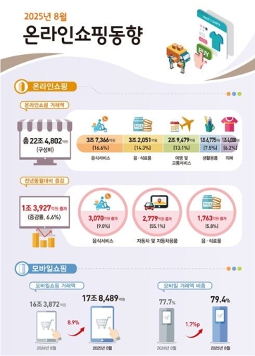 ±¹°¡µ¥ÀÌÅÍó °ü°èÀÚ´Â “¿Â¶óÀÎ °Å·¡¾×Àº Àü¹ÝÀûÀ¸·Î ¿ì»óÇâ Ãß¼¼¿¡ ÀÖÀ¸¸ç, Áö³ÇØ Æ¼¸ÞÇÁ »çÅÂÀÇ ±âÀú È¿°ú°¡ ÁÙ¾îµç ¿µÇâÀ¸·Î µ¿¿ù ´ëºñ Áõ°¡À²ÀÌ È®´ëµÈ °ÍÀ¸·Î º¸Àδٔ¸ç “ƯÈ÷ À½½Ä¼ºñ½º¿Í ½Ä·áǰ °Å·¡´Â ²ÙÁØÈ÷ »ó½Â¼¼¸¦ À¯ÁöÇϰí ÀÖ°í, ÃÖ±Ù¿¡´Â ½ÅÇü Àü±âÂ÷ ±¸¸Å°¡ ´Ã¸é¼ ÀÚµ¿Â÷ ¹× °ü·Ã ¿ëǰ °Å·¡µµ µÎµå·¯Á³´Ù”°í ¼³¸íÇß´Ù.
