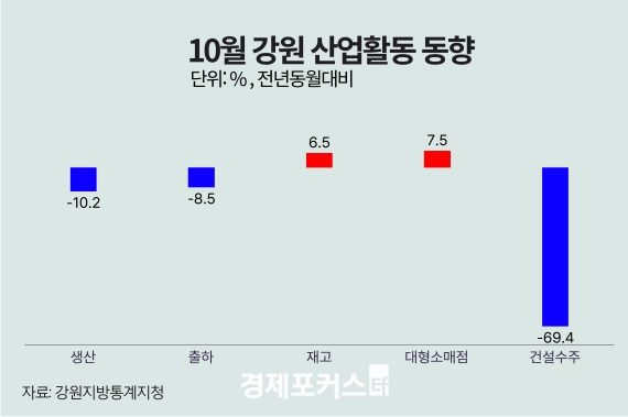 Áö³´Þ °¿ø Áö¿ª »ê¾÷Ȱµ¿ÀÌ »ý»ê·ÃâÇÏ ºÎÁø°ú °Ç¼³¼öÁÖ ±Þ°¨À¸·Î Àü¹ÝÀûÀÎ °æ±â À§Ãà È帧À» À̾´Â °¡¿îµ¥, ´ëÇü¼Ò¸ÅÁ¡ ÆÇ¸Å´Â ¹ÝµîÇÏ¸ç ¼Òºñ ºÎ¹®¸¸ ¼ÒÆø °³¼±µÈ °ÍÀ¸·Î ³ªÅ¸³µ´Ù.