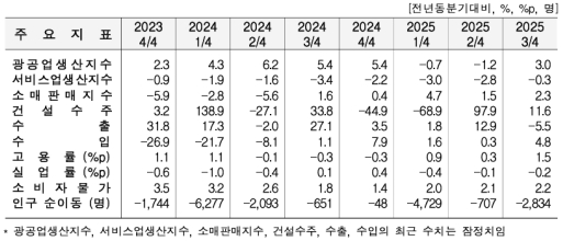 17ÀÏ ±¹°¡µ¥ÀÌÅÍó°¡ ¹ßÇ¥ÇÑ ‘2025³â 3ºÐ±â Áö¿ª°æÁ¦µ¿Çâ’¿¡ µû¸£¸é ±¤°ø¾÷ »ý»êÀº Àü±âÀåºñ(-2.8%), ´ã¹è(-29.8%) µîÀÌ ÁÙ¾úÀ¸³ª Àü±â·°¡½º¾÷(22.7%), ±âŸ ¿î¼ÛÀåºñ(6.6%) µîÀÌ ´Ã¾î Àü³â µ¿ºÐ±â ´ëºñ 3.0% Áõ°¡Çß´Ù. ¼ºñ½º¾÷»ý»êÀº µµ¼Ò¸Å(4.5%), ¿î¼ö·Ã¢°í(7.7%) µîÀÌ ´Ã¾úÀ¸³ª ºÎµ¿»ê(-22.2%), »ç¾÷½Ã¼³°ü¸®·»ç¾÷Áö¿ø·ÀÓ´ë(-4.4%) µîÀÌ ÁÙ¾î Àü³â µ¿ºÐ±â ´ëºñ 0.3% °¨¼ÒÇß´Ù.