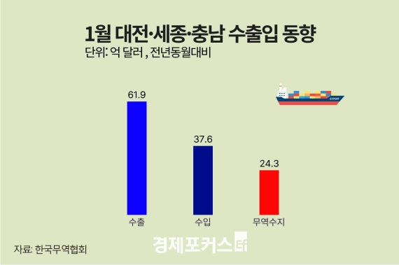 1¿ù ´ëÀü·¼¼Á¾·Ãæ³²Áö¿ª ¼öÃâ°ú ¼öÀÔÀÌ ¸ðµÎ °¨¼ÒÇÑ °¡¿îµ¥, ¹«¿ª¼öÁö´Â ¼¼Á¾¸¸ ÀûÀÚ¸¦ ±â·ÏÇß´Ù.